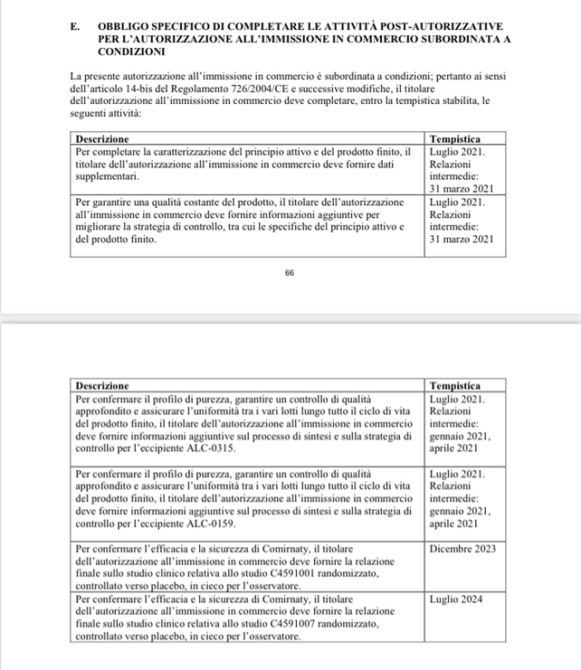 Le decisioni di esecuzione impugnate della Commissione europea hanno anche un effetto diretto generalmente astratto con rilevanza penale perché, nonostante il fatto che gli studi clinici inizialmente richiesti per confermare la propagandata efficacia e sicurezza (e quindi il propagandato rapporto beneficio/rischio positivo) di Comirnaty e Spikevax non siano mai stati eseguiti, è stata comunque concessa un’autorizzazione all’immissione in commercio incondizionata per cinque anni (rinnovabile), e la Commissione ha dichiarato in una nuda e cruda bugia che le condizioni per l’autorizzazione all’immissione in commercio incondizionata sarebbero state soddisfatte.