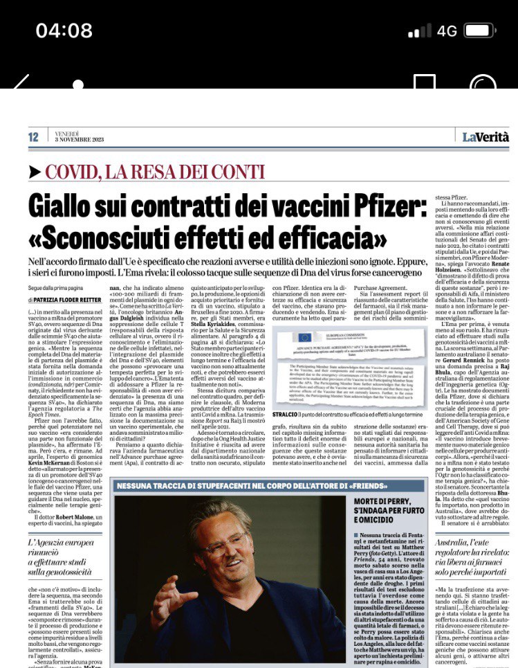 Già allora ho evidenziato anche la parte fondamentale che era visibile nella versione del contratto pubblicata sul sito della RAI. I miei precisi riferimenti al contenuto di documentazione istituzionale (EMA, Commissione Europea) e dei produttori non potevano far altro che portare alla conclusione che si stava per continuare e ampliare un crimine contro l’umanità. E ciononostante il Senato ha deliberato l’esecuzione del crimine contro i propri cittadini!
